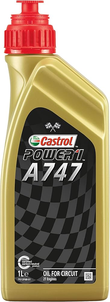 Castrol A747 is een laag as, synthetisch 2-takt smeermiddel speciaal ontwikkeld voor gebruik in multi-cilinder, watergekoelde tweetakt motoren van wegrace machines, waar neerslag controle in de verbrandingskamer essentieel is. Castrol A747 waarborgt een perfecte smering en bevat speciale toevoegingen om te voorkomen dat gasschuiven vastklemmen bij gebruik onder vochtige weersomstandigheden.