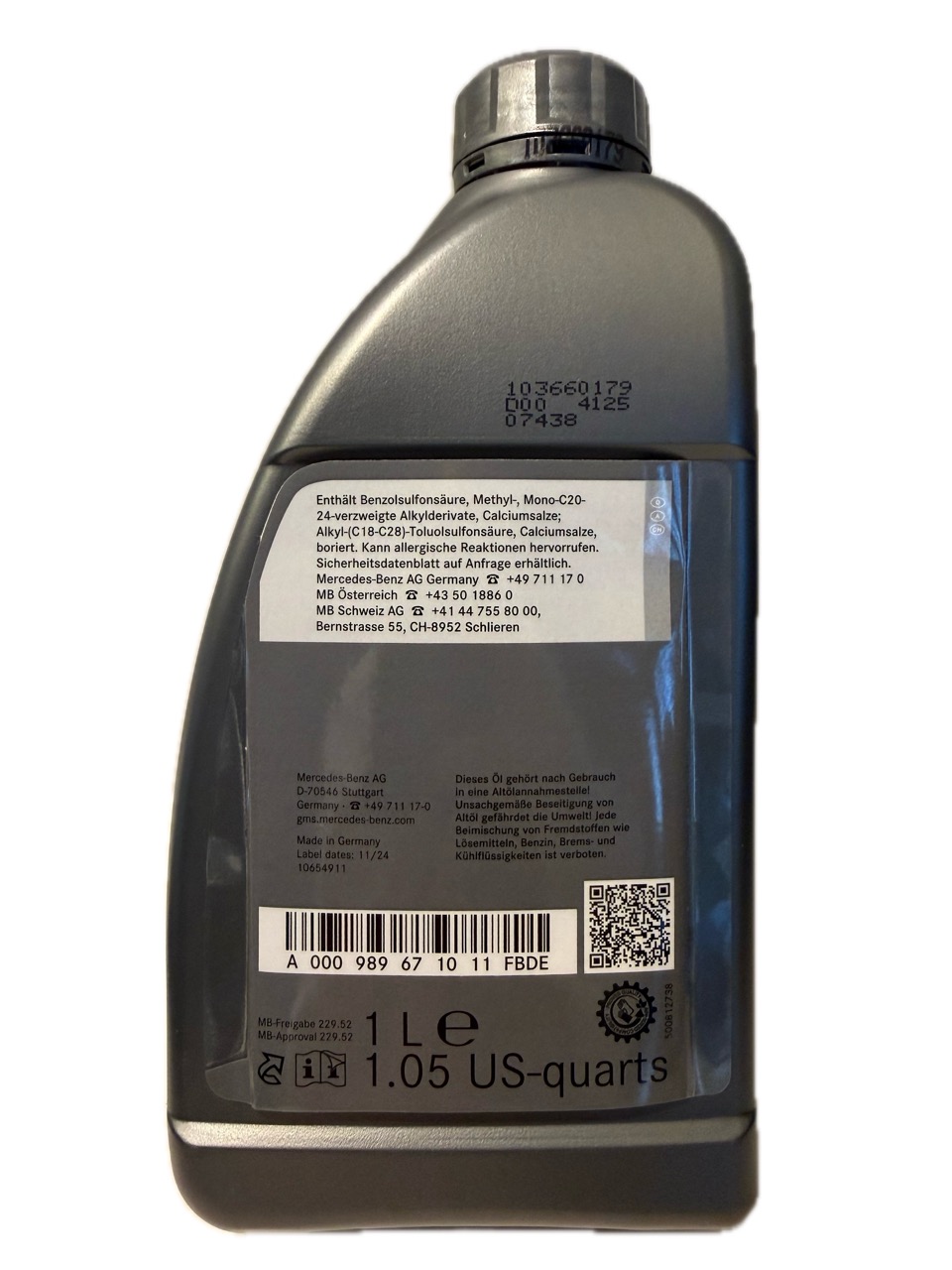 Deze Mercedes-Benz Genuine Engine Oil SAE 5W-30 MB 229.52 is een moderne, hoogwaardige motorolie die speciaal is ontwikkeld voor de nieuwste generatie Mercedes-Benz motoren. De olie voldoet volledig aan de Mercedes-Benz MB-Freigabe 229.52 en is ontworpen voor maximale bescherming in combinatie met strenge emissie-eisen.